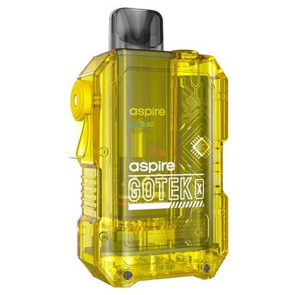 The Aspire Gotek X is a compact, matchbox-style pod kit featuring a vibrant yellow, futuristic translucent design. It features a 650mAh battery, 10-13W output, 2mL pods, and is ideal for MTL/RDTL vaping with auto-draw activation. It is lightweight, stylish, and highly portable.www.amazon.co.uk +4
