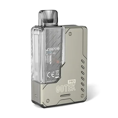 The Aspire Gotek Pro in Titanium is a premium, metallic-finished pod vape kit designed for portability and performance. It features a large 1500mAh built-in battery, 13–16W fixed wattage, and adjustable airflow, making it ideal for mouth-to-lung (MTL) vaping with a 2ml refillable, leak-resistant pod.www.vapeclub.co.uk +2